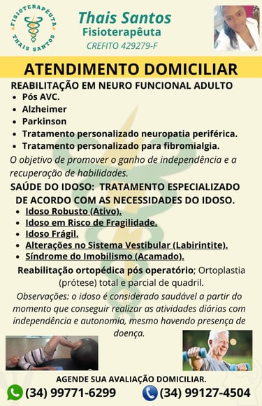 Atendimento domiciliar especializado em reabilitação Neurofuncional para adultos e idosos, com foco em saúde e bem-estar.
