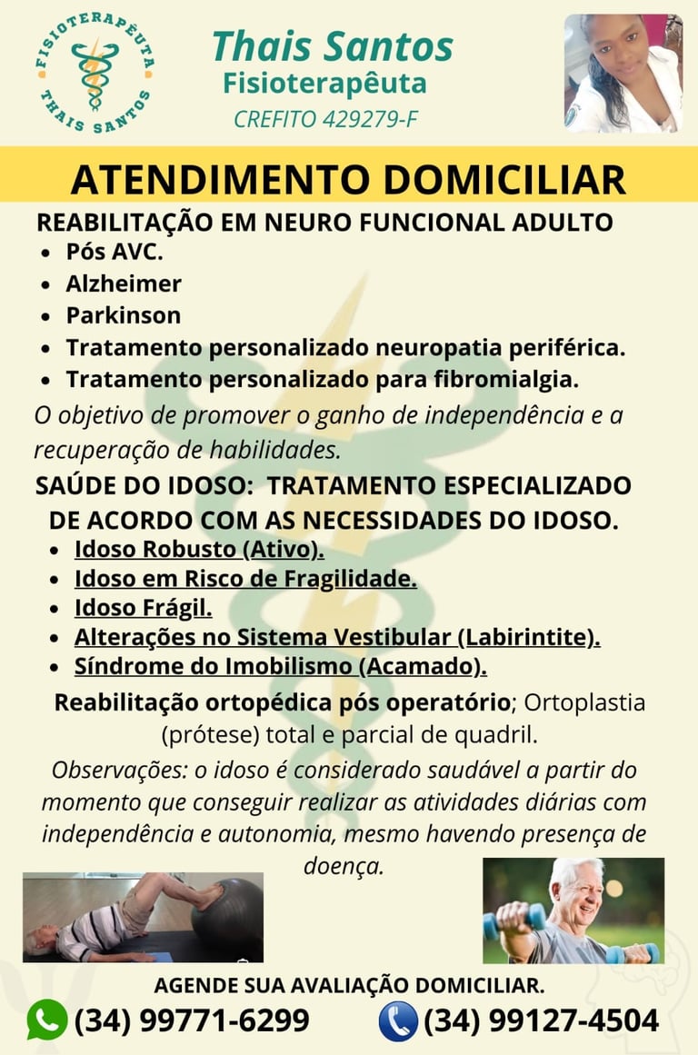 Thais santos- fisioterapeuta domiciliar em uberlândia / uberaba / Araguari - MG